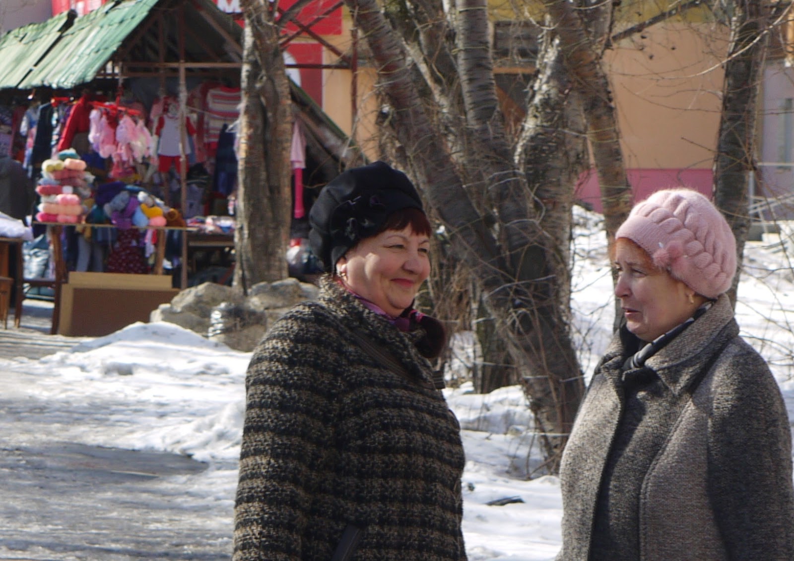 As it was one of the first sunny spring days of the year, schoolchildren were out for an excursion, and people enjoyed shopping at the market.