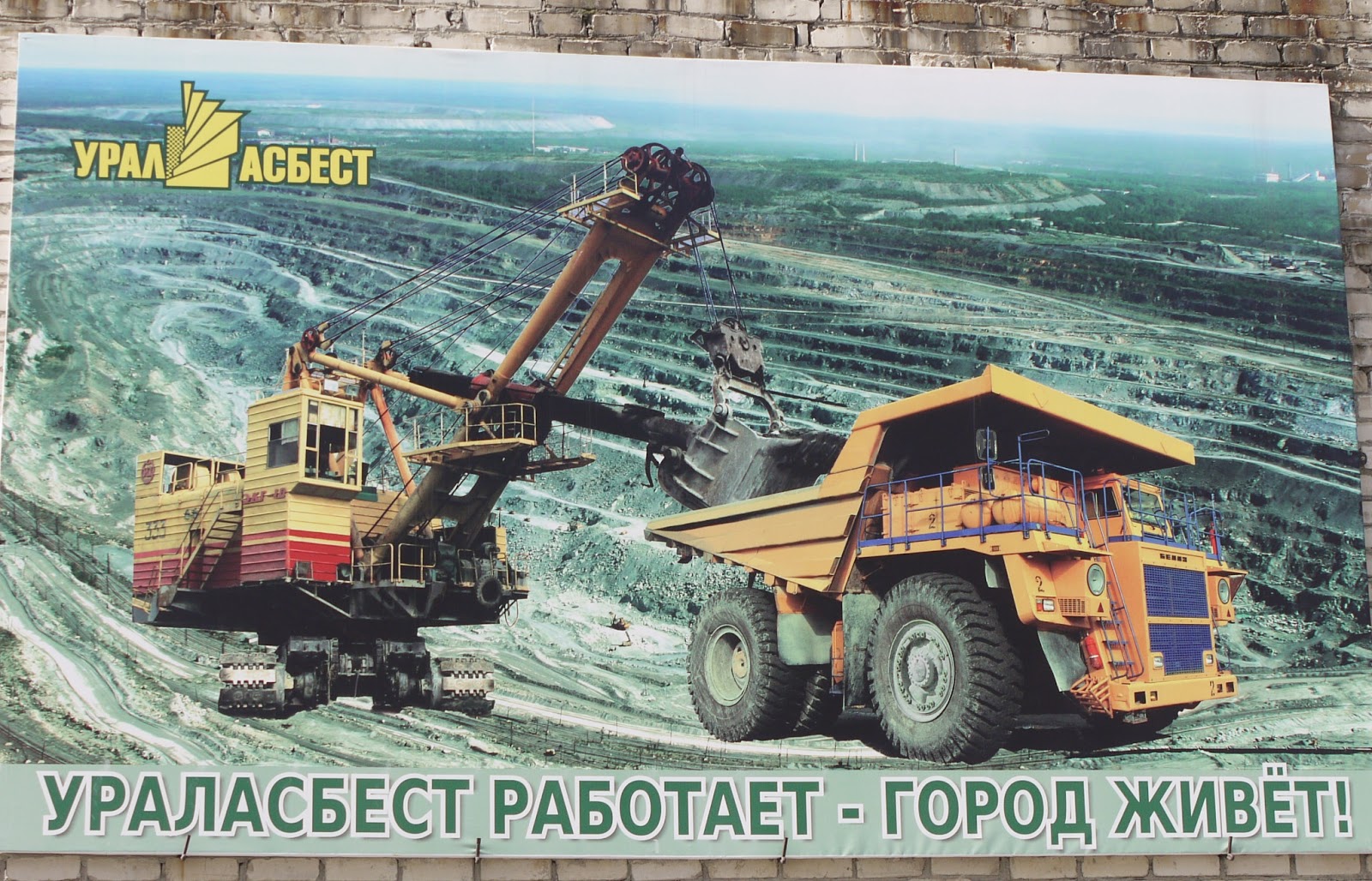 Back on Prospekt Lenina, I found another wall poster (Uralasbest is the company exploiting the mine):