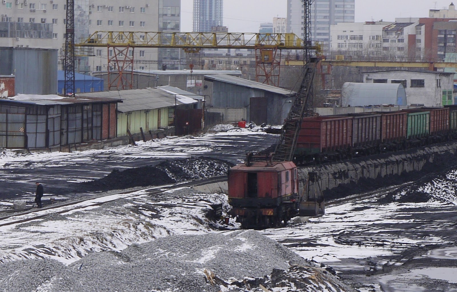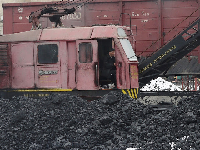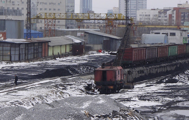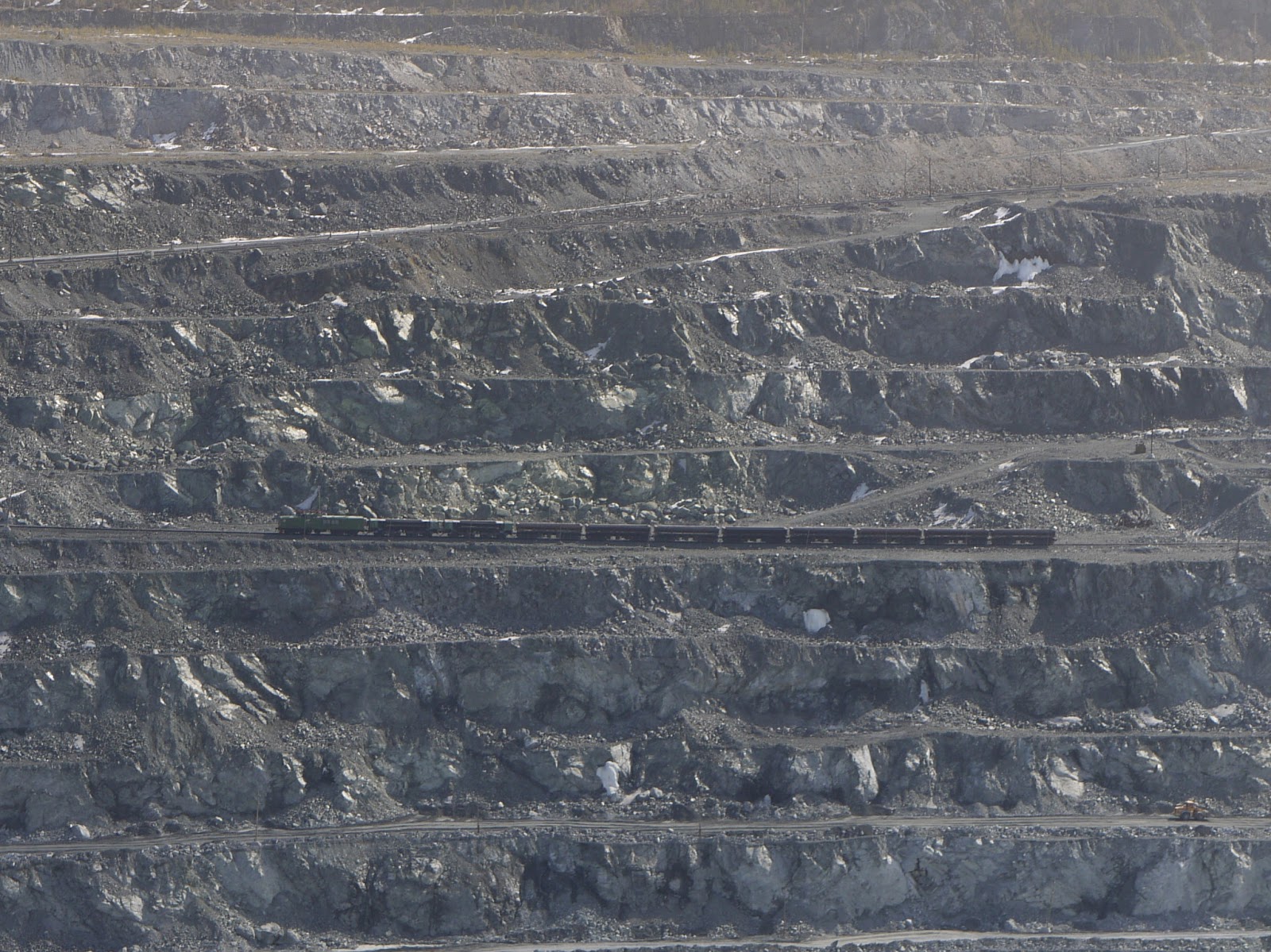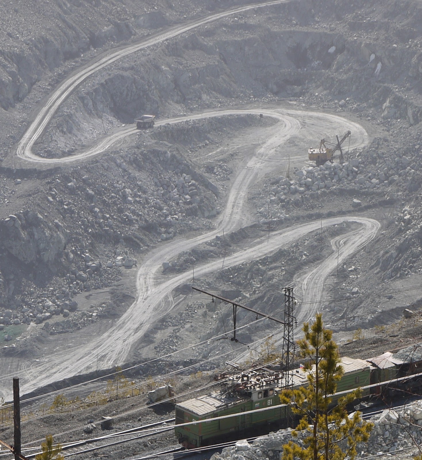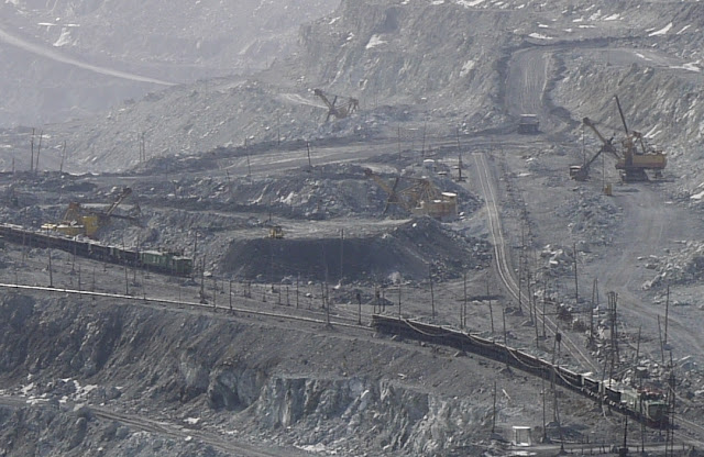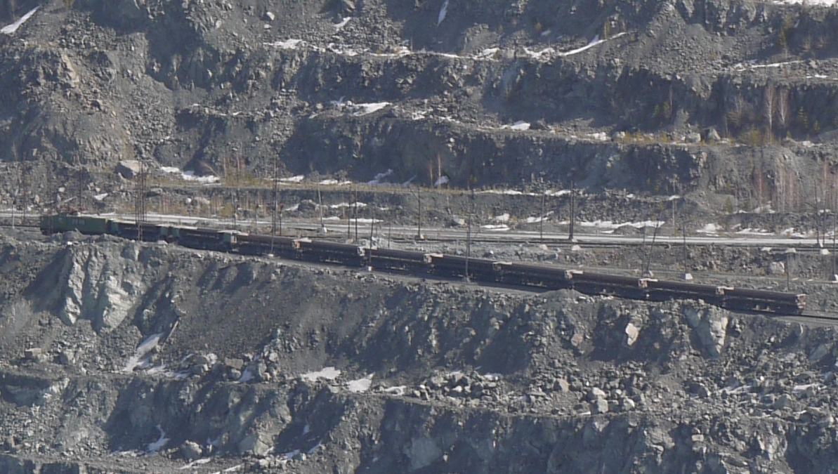 On both sides of the pit, heavily loaded trains were going back and forth, while huge excavators were noisily digging into the rock.